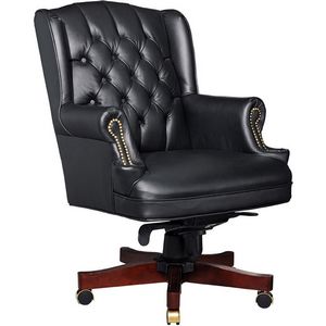 ┃尺寸:W750*D780*H1050-1120mm┃黑色大型皮椅,黑色PU碎皮,T702底盘┃低背木头椅